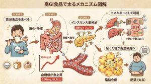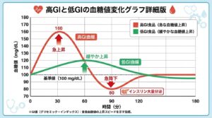 GI値が高い食品は、食べた後に血糖値が急上昇します。